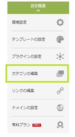 カテゴリーの編集は、左メニュー「設定」>「カテゴリの編集」から行います。