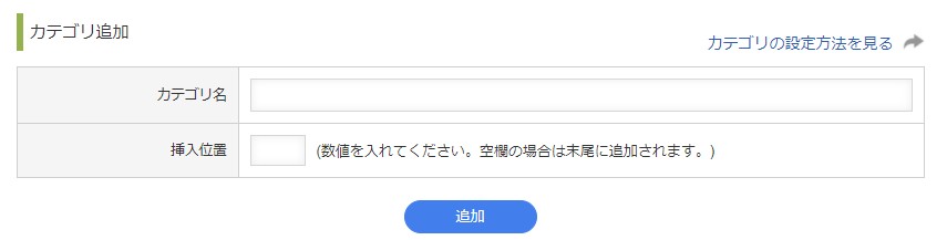 新たにカテゴリーを追加したい場合は「カテゴリの追加」のフォームに追加したいカテゴリー名を入力し追加ボタンをクリックします。