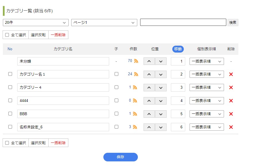 このページでカテゴリーの追加や名称の変更、削除、並び替えを行います。