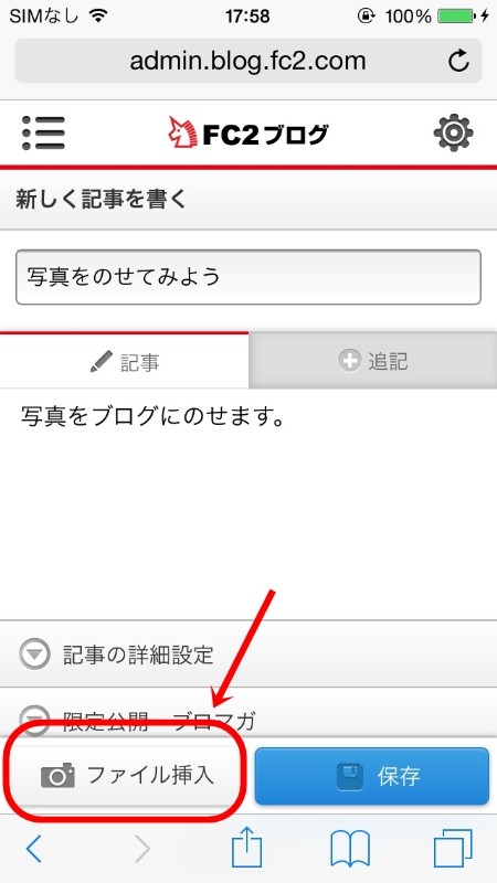 ブログ記事の文章内に写真を入れる手順を説明します。画像は1記事に何点でも載せることができます。