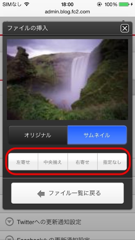 ファイルの挿入は山の絵のアイコンを選択しておこないます。
