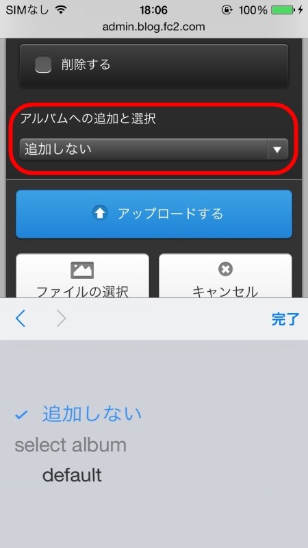 アップロードするファイルをアルバムに追加するかしないかを選択できます。