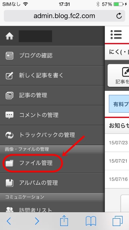 パソコン上のファイルをブログ上で使うためにアップロードします。