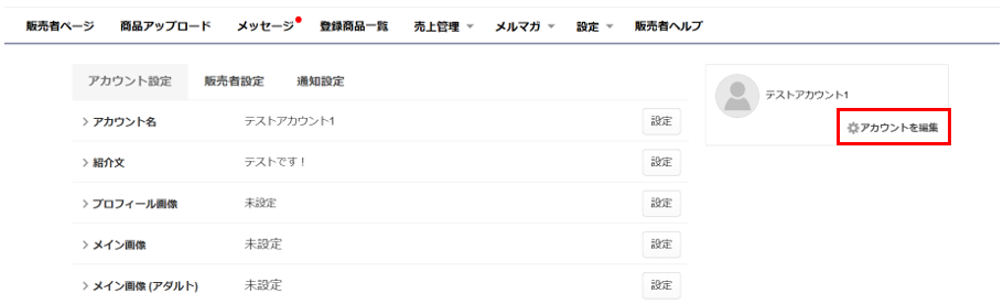 3. 画面右のアカウント名の下にある「アカウントを編集」をクリックすると「プロフィール設定」ページが表示されます。