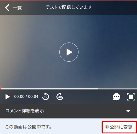 配信開始前の設定画面の下部にて、公開設定の変更を行うことができます。