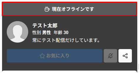 該当の配信者が配信を行っていない場合は、「現在オフラインです」と表示されます。